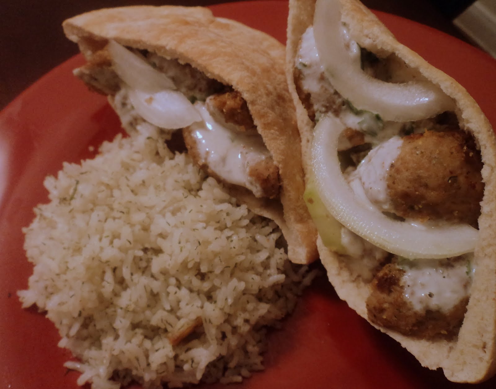 I made my own version of the tzatziki sauce. Beat a cup of yogurt with 2-3 table spoons of water. Add a table spoon of finely grated cucumber, garlic powder, salt and finely chopped parsley.